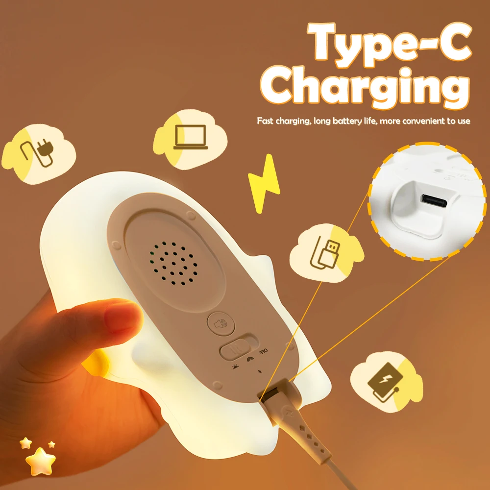 "description": "🐕 Puppy LED Squishy Tap Tap Night Light Lamp This puppy night light has an oversized head with a small body, round nose, and droopy ears for an adorably clumsy look. Its gentle glow fits perfectly in bedrooms or kids’ rooms, making it a heartwarming gift. Key Features ✨Character Design: The puppy lies flat with a head twice the size of its body, accented by floppy yellow ears and a tiny round tail, creating a cuddly and playful design.✨Soft Warm Glow: Provides a gentle and soothing light, perfect for creating a relaxing ambiance in bedrooms, nurseries, or any cozy space.✨Durable and Safe: Crafted from high-quality, non-toxic materials, this night light is both durable and safe. It's built to last, offering reliable comfort for many nights to come.✨Easy Operation: Simply tap it, and watch as it lights up the room with a comforting glow. Lightweight and portable, it’s easy to move and place wherever you need a little extra light.",